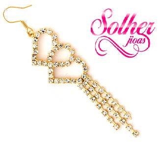 Pendientes Dos Corazones Unidos Con Circonitas Gold.