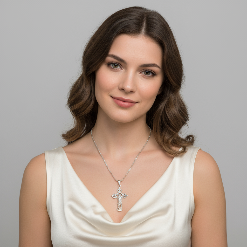 Cadena con colgante Cristo crucificado con relieve en plata
