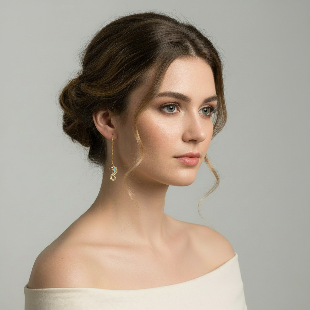 Pendientes Hilo Caballo de Mar Gold .