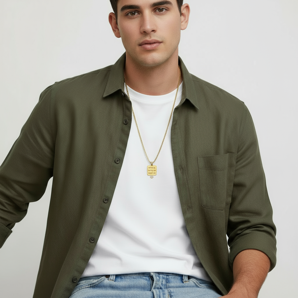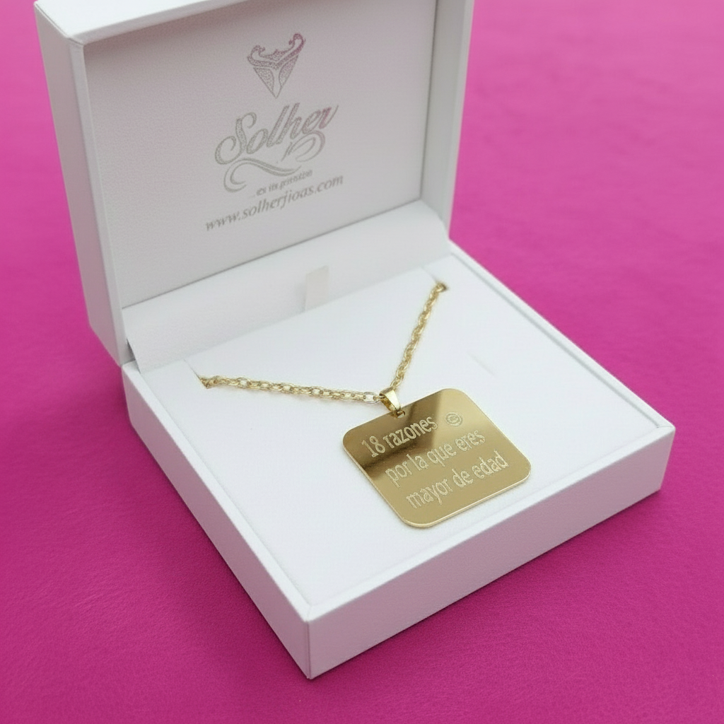 Cadena y Placa Cuadrado Personalizado Gold T.L