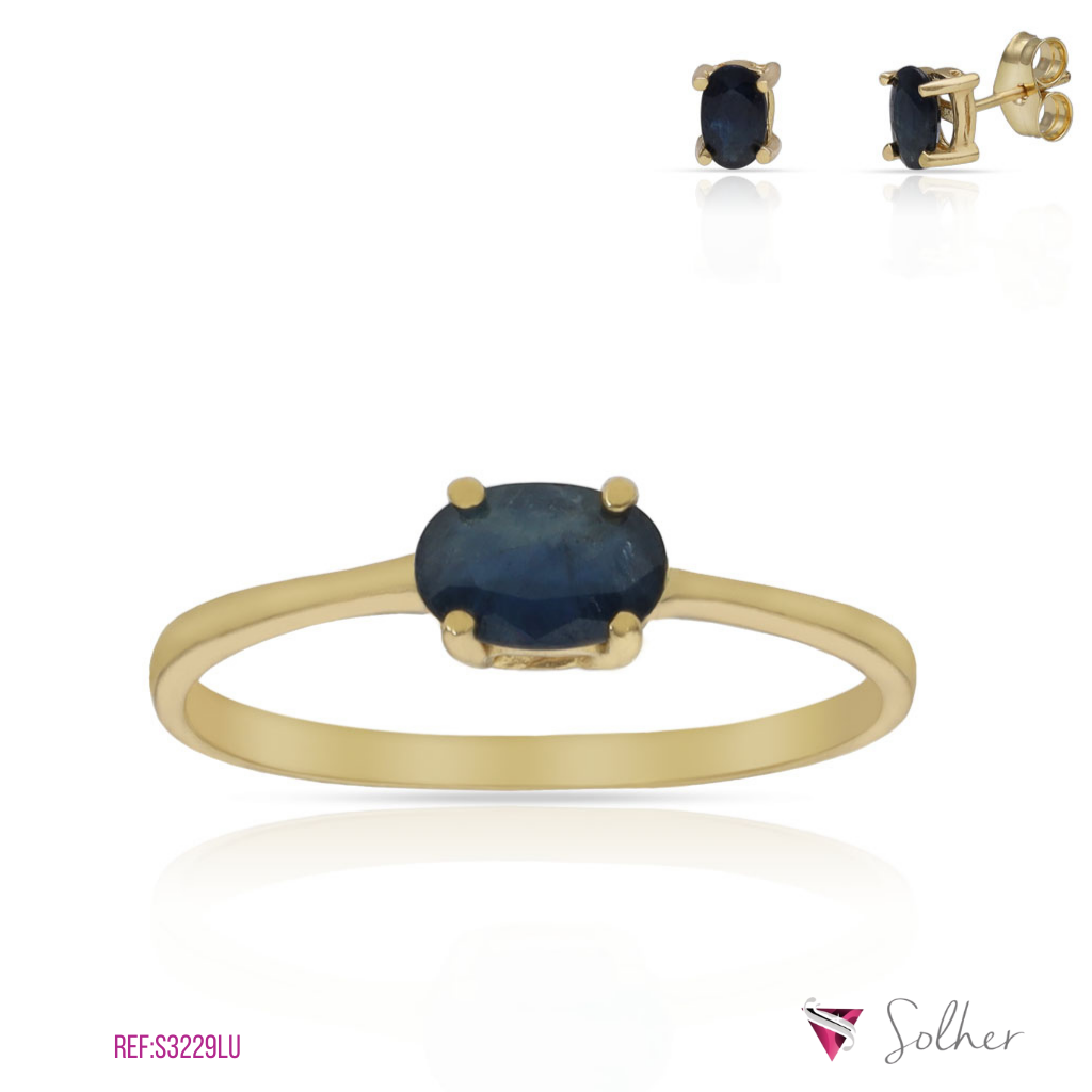Anillo Hecho en 100% Oro de 18 Kilates. con piedra oval zafiro fino.